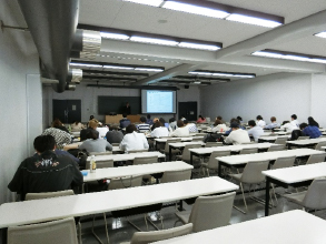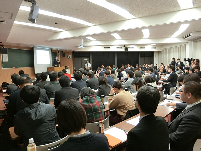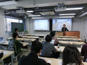 修了式に先立ち修了論文報告会を実施し、修了生自らが論文の要旨を発表した。