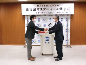 新型コロナウィルス感染症の流行を受け、オンライン上での報告会・修了式を実施した。なお、第19回マスターコース実行委員長の山本伸さんが受講生を代表し、修了証の授与を受けた。