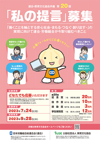 第21回連合提言募集「『働くことを軸とする安心社会-まもる・つなぐ・創り出す-』の実現に向けて連合・労働組合が今取り組むべきこと」を開始(~7月22日)