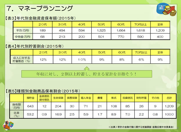 (図3)はキャリア&マネーセミナーのレジュメから抜粋した1ページです。セミナーでは、年代別の金融資産の保有額を説明しますが、平均の貯蓄額と自分の貯蓄額を比較して、驚く組合員がいらっしゃいます。また、支給される賃金のうち、1割から2割は税金や社会保険料などとして、賃金から天引きされていることなどを説明すると、金融知識として関心を持つだけにとどまらず、社会や政治へも関心が広がっていくことを実感することもあります。