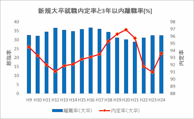 [2]新規学卒者の離職状況(平成24年3月卒業者の状況)、厚生労働省