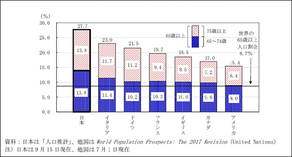 図1 主要国の高齢者人口の割合の比較(平成29年)