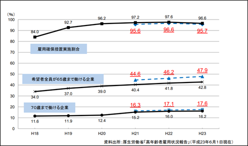 しかし、厚生労働省の行った928社に対する意識調査の結果、この増加の理由の半数近くはあくまでも「高年齢者雇用安定法の改正に対応したため」、「継続雇用の希望者が増加したから」であり、必ずしも高齢者の雇用に積極的とは言えない状況である3)。つまり、多くの企業にとって高齢者の雇用はコストとして捉えられている可能性が高いのである。