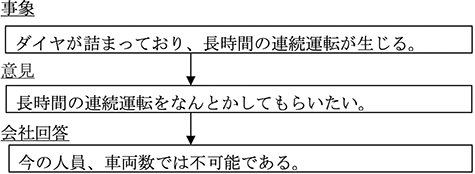 「顧客満足度」、「売上増」、「最適な車両配分(効率化)」等、会社側が興味を示すキーワ ードを用いることで、攻めるのでなく、提案という形で話を持っていくということも必要 と考える。