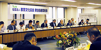 |  社団法人教育文化協会は8月22日に第9回通常総会を開催し、2003年度の事業計画を決定し、新理事・監事を選任した。 その後開催した理事会において新体制を決定した。(新体制はこちら)