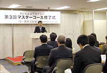 | 第3回マスターコースの修了式が2004年3月31日16時から開催され、修了生21名(修了生名簿参照)が式に臨んだ。