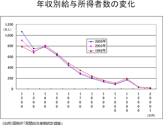 次に「雇用社会」である日本の課題に、話を移らせていただきたいと思います。「雇用社会」とは、東京大学名誉教授の菅野先生が提唱したもので、日本社会を一言で言い表す用語であります。日本の就業者は2008年時点で6373万人になりますが、そのうち雇用者が5520万人を占めています。このように、日本の就業者においては、非常に多くの人達が、比率にして8割以上の人達が、雇用者となっております。人々の働き方で見ると、日本は雇用を中心とした社会となっている、と言うことができるでしょう。