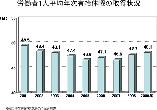 それに加えて、年次有給休暇の取得率は、平均で5割以下となっています(図表11)。労働時間も長い上に、なかなか休めないというのが、今の日本の現状だと言えます。そして、過労死や過労自殺の件数が年々高まっています。