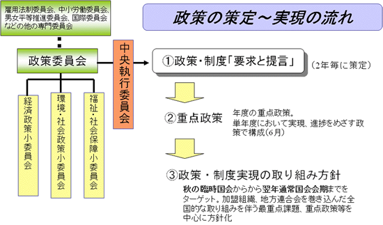 3点目は、支持・協力関係にある政党や議員を通じて行う方法であります。特に、民主党が野党であった時には、民主党と連携を取りながら、連合の政策を理解してもらい、それを実現するために協力してきました。