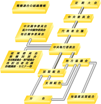 これは電機連合の話ですが,単組であれば単組の定期大会や中央委員会などが開催されており,ナショナルセンターも同様です。今のお話を聞いて頂ければご理解頂けたと思いますが,労働組合の決定事項はトップダウンでおこなわれるものでなく,上の機関で決まった事を、下の機関で組合員の声を聞きながら吟味した上で実行に移されているということです。