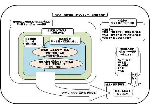 もう一つ2009年5月21日に成立した「公共サービス基本法」という法律があります。この法律では、公共サービスとは、「国民が日常生活及び社会生活を円滑に営むために必要な基本的な需要を満たすものをいう」。「国又は地方公共団体が行う……公共の利益の増進に資する行為」というようなことが書いてあります。