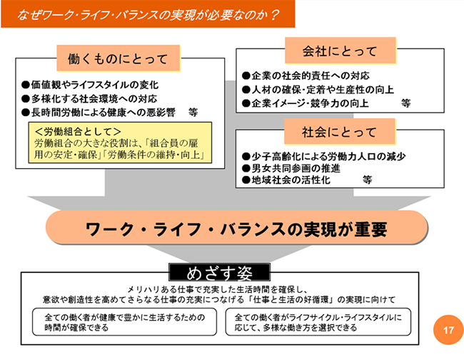 続いて、ワーク・ライフ・バランスの実現に向けて、労働組合がどのような役割を果たしているのかについてお話ししたいと思います。