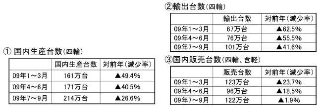 上記の表は、自動車産業が2008年秋以降の経済危機で受けた影響を表しています。2009年1~3月は減産のピークでした。生産は半減し、輸出は6割減少しました。在庫削減を急激にしたことが、結果的に非正規の問題を引き起こしたと言われています。なぜ、ここまでの急激な減産をしたのか。一つは、売れないからです。当たり前の話です。もう一つは、あまり表に出ていませんが、あの当時、自動車メーカーによっては資金調達が非常に厳しくなっていました。お金がなければ車はつくれず、開発もできません。