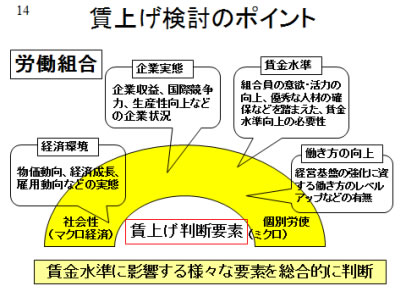 3点目としては、働く者の生活を維持向上させるために、賃金水準の格差、あるいは賃金カーブのゆがみを是正して、賃金水準の改善をはかるということです。