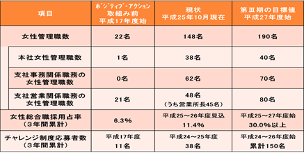 ポジティブ・アクションを推進するために、当時社外取締役だった坂東眞理子氏の監修のもと、社長を委員長、役員と女性職員を委員とする「女性の活躍推進委員会」が設置されました。私も組合員の代表として最初のメンバーとして参加しました。