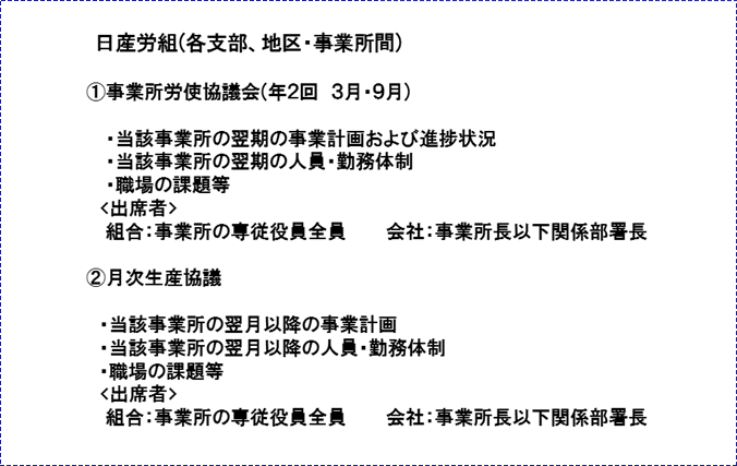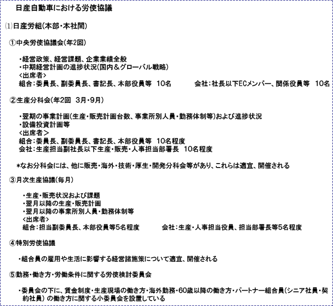 次に、日産自動車における具体的な労使協議の仕組みについて申し上げたいと思います。