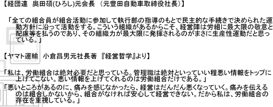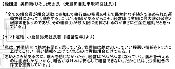 この授業を通して、労働組合が会社とどういうふうに関わっているのかを聞かれていると思うのですが、ここに有名な言葉を2つあげました。
