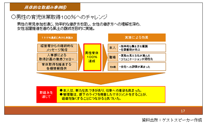 ではここで、男性の育児休業の取得についてお話ししたいと思います。