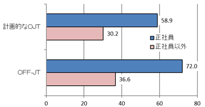 雇用形態別でみると、そもそも雇用形態として正社員の方が多いので、多くなっています。
