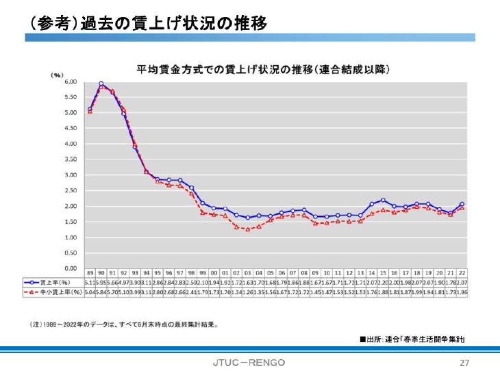 なお、春季生活闘争というとハチマキをまいて気勢をあげているイメージを持っている方もいらっしゃると思います。それは否定しませんが、それだけではないということをご理解いただきたいと思います。というのも、例えば、最近ではメタバースというかVRを使ってみんなにアバターで参加してもらって春季生活闘争のイベントをやったりとかもしておりまして、春季生活闘争の社会的気運の醸成のあり方も変わっているということをご理解いただければと思います。